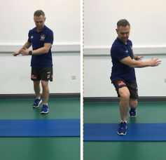 With any snow sport good balance is essential with particular focus on dynamic balance so the ability to stay upright while on the move. Standing on one leg, reach for the points of an imaginary clock face. Swap legs and do it again.